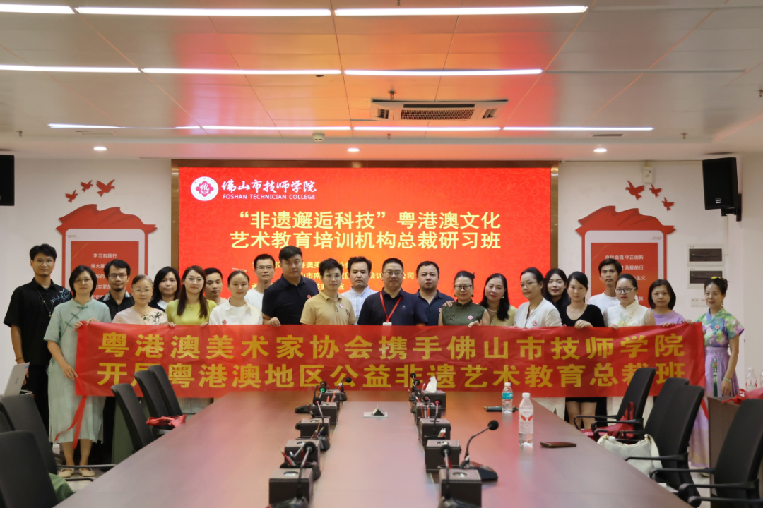 10月11日,佛山市技师学院联合粤港澳美术家协会举办了以“非遗邂逅科技”为主题的粤港澳文化艺术教育培训机构总裁研习班。活动吸引粤港澳三地近 40 家文化艺术教育培训机构和院校参与,各方围绕“非遗文化与现代科技融合”背景,深入探讨文化艺术教育行业的创新方向、发展机遇及实践路径,为推动粤港澳文化艺术教育协同发展注入新动能。